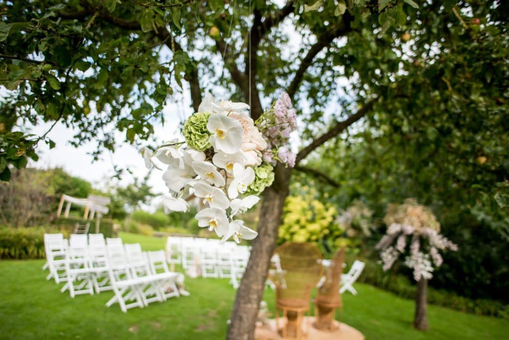 Onder de appelbomen van de landelijke tuin kunnen jullie je geloftes uitbrengen en de liefde bezegelen. De romantiek en het buitengevoel geven hier een hele bijzondere sfeer.