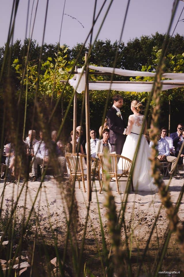 Trouwen in festival sfeer en dat in Drenthe…. tegenwoordig helemaal hip! Geen 3-delig kostuum, maar lekker met je blote voeten in het zand of gras.