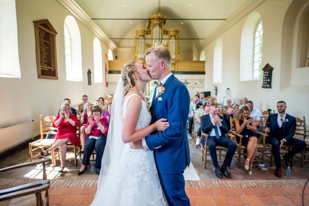 In de kerk kan zowel het burgerlijk als het kerkelijk huwelijk worden voltrokken. Een combinatie is natuurlijk ook mogelijk: ’s middags trouwen op het zandstrand voor de burgerlijke stand en ’s avonds, met alle gasten erbij, de dienst in de kerk. De kerk mag naar eigen idee aangekleed en versierd worden.